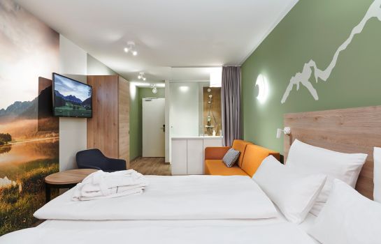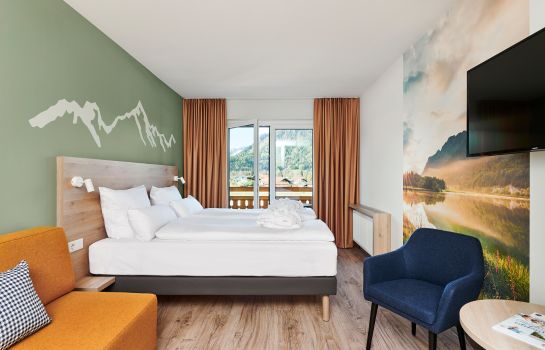 Details zum Angebot bei  Beschreibung:Einfach schöner Urlaub inmitten der ursprünglichen Natur Oberbayerns: prächtige Berge, kristallklare Seen und weitläufige Wiesen bilden die perfekte Kulisse, um den Alltag weit hinter sich zu lassen. Freuen Sie sich auf eine entspannte Zeit mit köstlichem Essen, vielen aktiven Freizeitmöglichkeiten im Sommer sowie im Winter und einem 1.850 m2 großen Wellnessbereich. Die Zimmer im a-ja Ruhpolding beeindrucken mit Blick in die Natur und sind mit einem besonders bequemen Kingsize-Bett, einem gemütlichen Sitzbereich mit 43-Zoll-Flachbild-TV und einem praktischen Bad ausgestattet. Auch kulinarisch bleibt kaum ein Wunsch unerfüllt: morgens steht ein reichhaltiges Frühstücksbuffet mit frisch zubereiteten Eierspeisen und weiteren Leckereien für Sie bereit, abends stellen Sie sich an unserem Marktbuffet mit Live-Cooking-Station das zusammen, wonach Ihnen der Sinn steht. Im separaten Spielzimmer beim Restaurant warten auf die Kleinen jede Menge Spielsachen.
